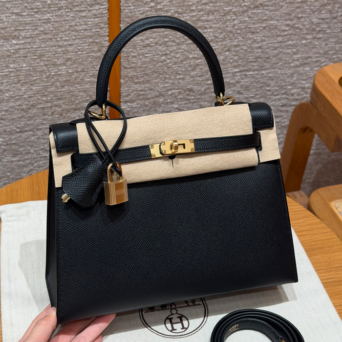 • 최고퀄 에르메스 올수공 켈리 25 블랙 엡송 가죽 금장
